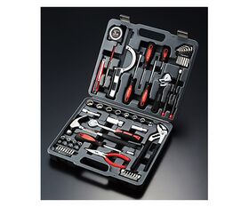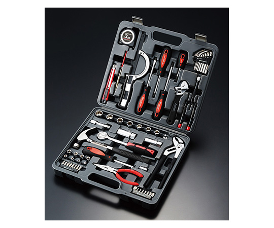 ●セット内容:精密ドライバー3本(No.00、No.0、-1.4mm)、精密ドライバー3本(No.00、No.0、-1.4mm)、六角棒レンチ8本(1.5、2.0、2.5、3.0、4.0、5.0、5.5、6.0mm)、ドライバービット8本(No.0、No.1、No.2×2、No.3、-4、-5、-6mm)、六角ビット2本(8、10mm)、ヘクスローブビット6本(T8、T10、T15、T20、T25、T30)、9.5mm角ラチェットハンドル、9.5mm角ソケット7個(11、12、13、14、15、17、19mm)、9.5mm角プラグソケット2個(16、21mm)、9.5mm角エクステンションバー75mm、9.5mm角ソケットアダプター、6.35mm角ソケット8個(4、5、5.5、6、7、8、9、10mm)、6.35mm角スピンナーハンドル、6.35mm角ビットアダプター、ラジオペンチ150mm、モンキーレンチ150mm、ウォーターポンププライヤー235mm、ネールハンマー、ハクソーフレーム、ダイヤモンドヤスリ、カッターS型、コンベックス3m
