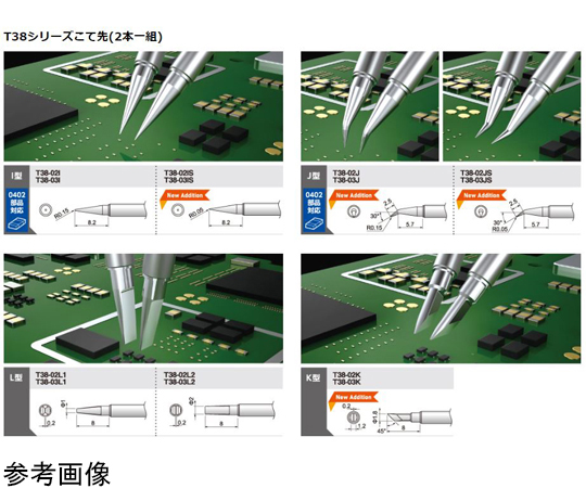 ●▼メーカー従来品のツイーザーよりも豊富なこて先ラインアップ。0402部品対応のこて先もご用意しています。