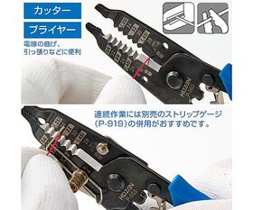 ●先端がプライヤーになっているので、電線の曲げ、引っ張りなどに使用できます。