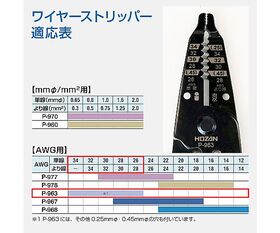 ●適応電線:AWG単線:34/32/30/28/26、AWGより線:34/32/30/28、単線:0.14/0.20/0.25/0.32/0.40mmφ、より線:0.014/0.023/0.035/0.055/0.089mm^2