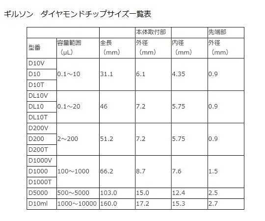 ●容量範囲:0.1μL~20μL