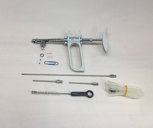 ●構成内容:連続分注器、ニードルS・L・LL各1本、メタルシンカー付きシリコンチューブ、スペアパーツセット、バレル洗浄用ブラシ