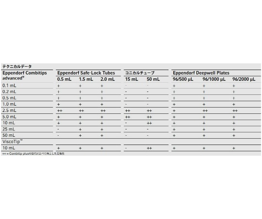 ●1978年、EppendorfはCombitip/Multipetteシステムの導入によって、産業および実験室のワークフローを革命的に変え、過去38年間市場革新のリーダーを担ってきました。Eppendorf Combitips advancedは、完全に再設計され、現代のあらゆる実験室の全ての要求を満たすように最適化されました。ポジティブディスプレイスメントの原理を採用したCombitips advancedは、液体の密度や特性(例えば蒸気圧が高い液体や粘性のある液体)に関わらず、常に希望通りの正確な容量での液体の分注が可能です。また、ピストンの形状により実現した高い密閉性により、エアロゾルによるコンタミネーションを防ぐことができ、放射性物質や有害物質を取り扱う際も安全に分注できます。