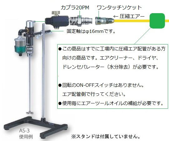 ●付属品:撹拌棒φ8×450mm1本、撹拌羽根φ60mm×1個、カプラ20PM×1個