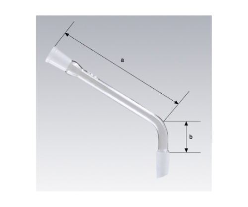 ●共通すり合わせ規格のメス形とオス形の接続口の向きが120°または105°の角度で曲がった分留に使われるガラス製の連結管です。