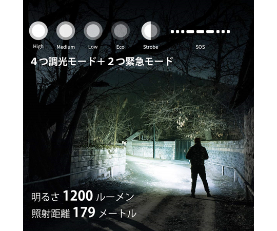 ●モード:HIgh-Med-Low-Eco-ストロボ-SOS
