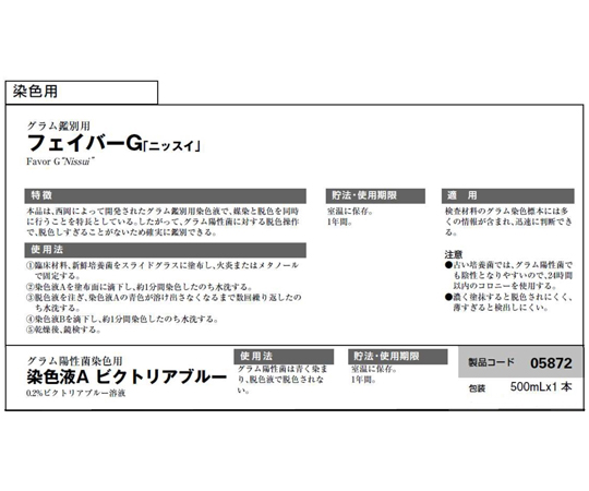 ●本品はグラム陽性菌染色用の0.2%ビクトリアブルー溶液である。