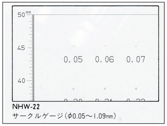 ●白抜きの円ゲージを各寸法ごとに表記してありますので様々な用途でご使用いただけます。