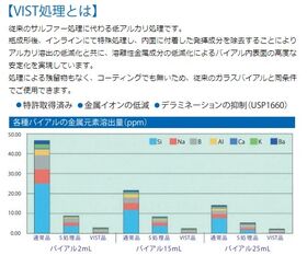 ●サルファー処理に代わる新たな低アルカリ処理(VIST)を施したバイアル瓶です。