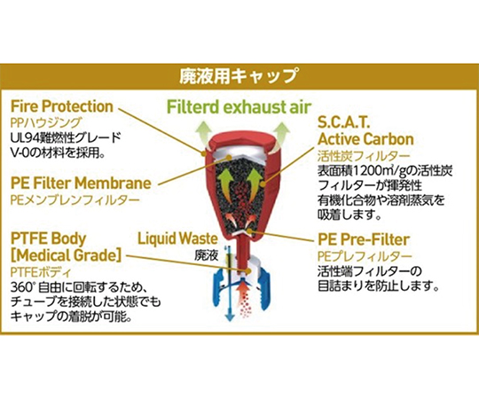 ●廃液容器からの気化ガスを排気フィルター(別売)を通して安全に排出できます。