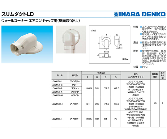 ウォールコーナー AC用 LDWM-70-W