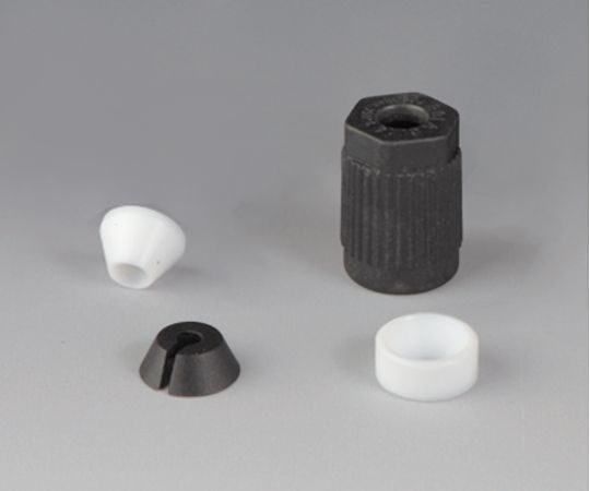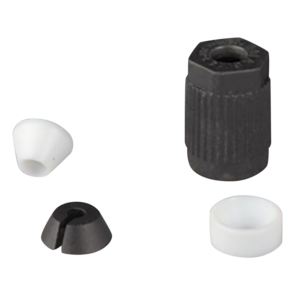 ●材質:スクリューキャップ、Vリング/PPS(ポリフェニレンサルファイド)、テーパーリング・シールリング/PTFE(四フッ化エチレン)
