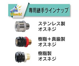 ●「省エネ」:一般的なホース継手より口径が大きいので圧力損失を低減し省エネ