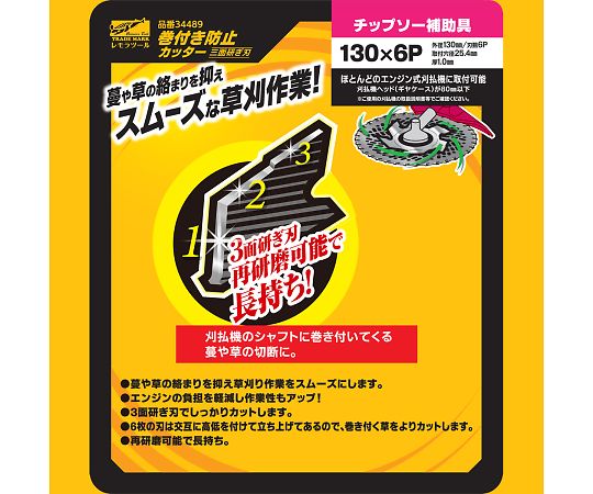 ●6枚の刃は交互に高低を付けて立ち上げてあるので、巻き付く草をより効率よくカットします。