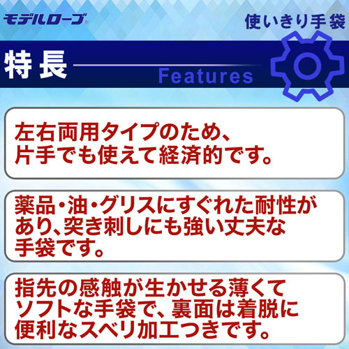 ●薬品・油・グリスにすぐれた耐性があり、突き刺しにも強い丈夫な手袋です。