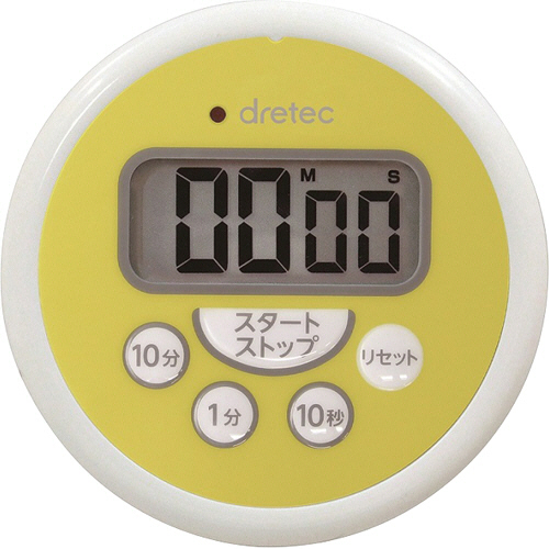 ●厨房での二次感染防止に、汚れたらサッと洗える防水タイマー。カラーはイエローです。