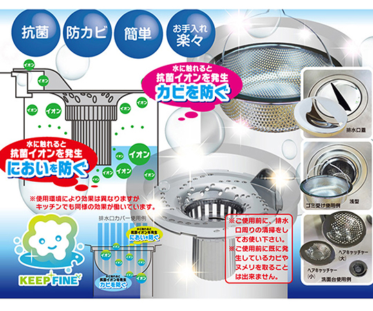 ●水分(空気中の水分等も含む)に触れると抗菌イオンが溶出し製品に近い周りにも効果を発揮します。