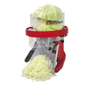 ●ドラムの回転と丸刃の回転により、キャベツの自重で無理なくきれいにスライスできるロータリー式。
