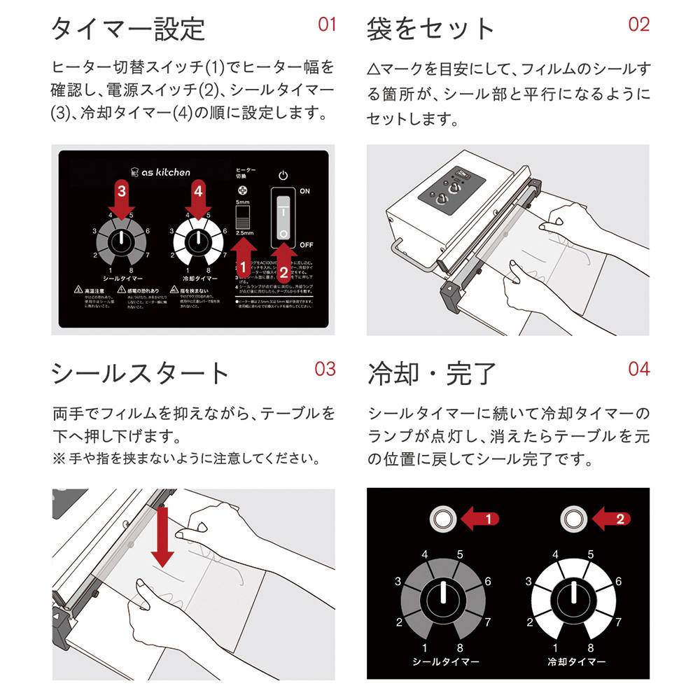 ●冷却タイマー搭載により、均一なシールが可能です。