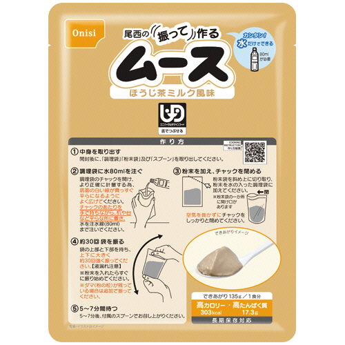 ●尾西の振って作るムースです。ほうじ茶ミルク風味、20袋セット。