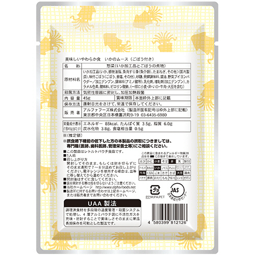 ●風味豊かないかのムースに、やわらかいごぼうを添えました。50食のセットです。