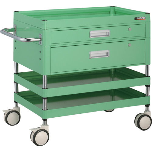 ●薄型と深型の引出しを組み合わせてあります。●車輪と共に車軸もロックするダブルロック仕様のキャスターです。●棚板表裏取り付けできます。