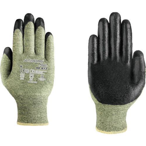 ●耐切創性に加え、耐熱素材に特殊コーティングを施すことで高い難燃性も持たせています。●柔らかい発泡コーティングが柔軟性とグリップ力を発揮します。●人間工学に基づき設計されています。●ウェット、ドライ、オイリーのいずれの環境・対象物においても高いグリップ性能を発揮します。