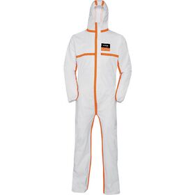 ●オレンジ色のテープシームとラミネート加工により防護性能を強化、視認性の高いデザインです。●クラス7のクリーンルーム規格(ISO 14644-1)に適合しています。●スプレー、微粒子、ミスト、静電気から防護します。●ファスナー部の接着テープにより、高い防護性を確保します。●中指部分のフィンガーループで袖がめくれ上がるのを防止します。