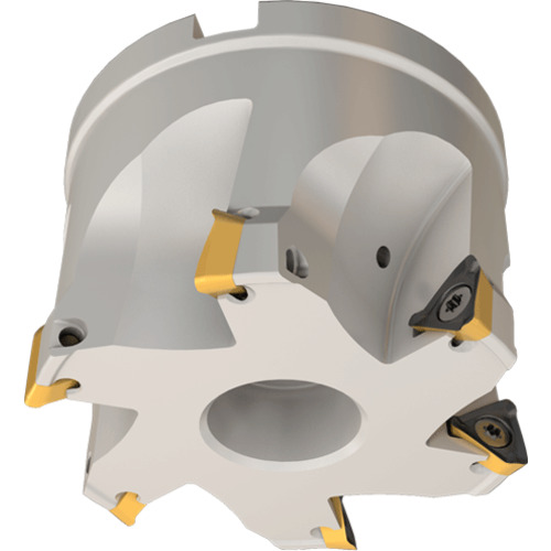 ●3コーナー使いフライス工具です。●高精度90°肩削り加工を実現し、最新チップ形状は切削抵抗を低減し、マシン動力を抑制します。●3コーナー使いヘリカル切刃三角形チップはコーナー当たりのコストを削減します。