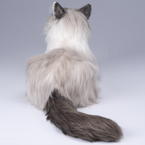 ●背中を撫でると「みゃ~ぉ」と甘えた声、そっと触ると「なぁ~ぅ」とリラックスした声で鳴きます。ラグドールのぬいぐるみ。