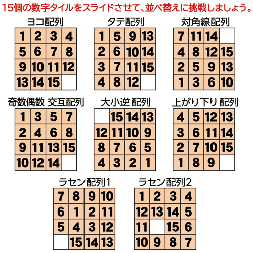 1から15の数字を順に並べるスライドパズル。