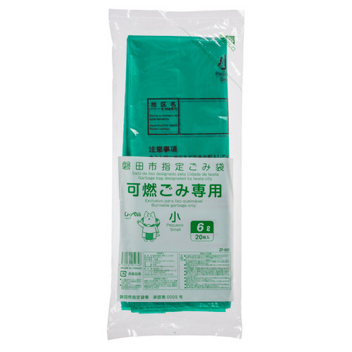 コア 磐田市 ごみ袋 可燃 手付き 緑 6L(小) ZF001 1パック(20枚)