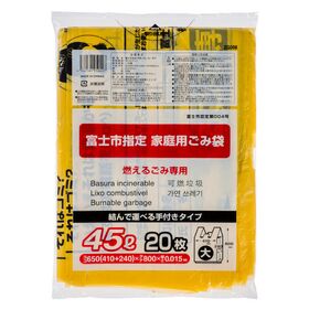 コア 富士市 指定ごみ袋 可燃 手付き 黄色 45L(大) ZG008 1パック(20枚)
