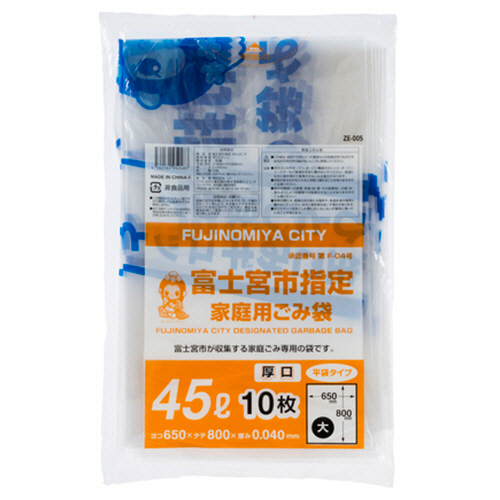 コア 富士宮市 指定ごみ袋 透明 45L(大) 厚口 ZE005 1パック(10枚)