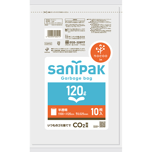 日本サニパック サニパックポリ袋 nocoo in しっかりタイプ 半透明 120L 0.025mm CUH12 1パック(10枚)