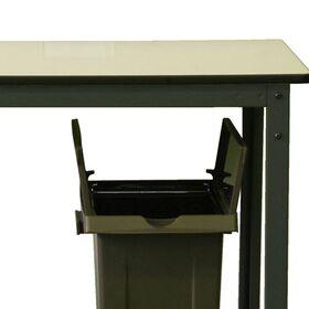 ●フタが省スペースで開閉できるので、机の下でも開けられます。(指で開くこともできます。)