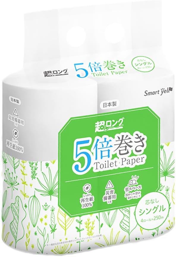 再生紙超ロングタイプ5倍巻き4ロール。