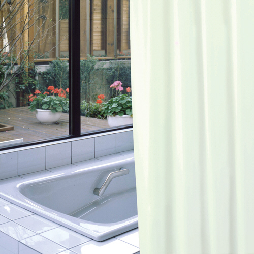 ●防炎バスカーテン、色はライトグリーンです。
