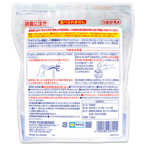 ●クリスタルビーズの中にいろいろなイヤなニオイに対し消臭作用のある植物系消臭成分などをしっかり浸透させた消臭剤です。