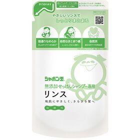 ※シリコン、合成ポリマー、香料、着色料、防腐剤を使用していない、無添加せっけんシャンプー専用リンスです。