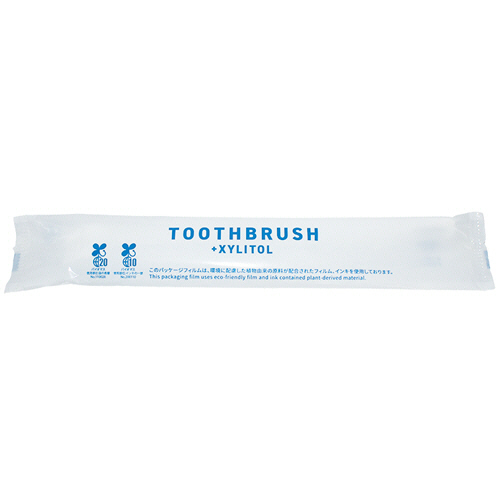 ●天然由来甘味剤・キシリトール配合の歯みがき液付歯ブラシ、100本入です。
