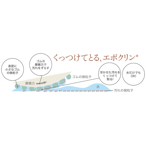 ●お湯に濡らして拭くだけで、ゴムの摩擦力と吸油性で皮脂汚れや古い角質がしっかり落ち、洗い心地がさっぱりします。石けんやボディソープとの併用も可能です。