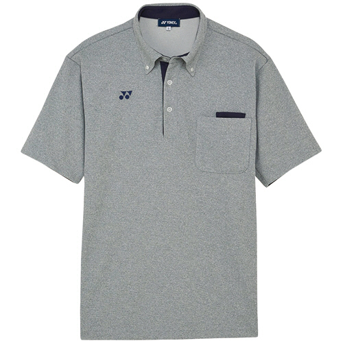 ●きちんとした印象のボタンダウンカラーのニットシャツ。Mサイズ、色はミディアムグレーモクです。