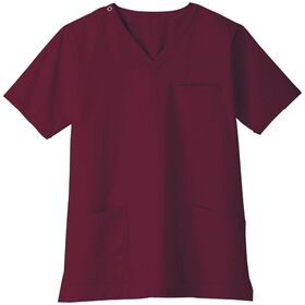 ●機能とデザインをシンプルにまとめた汎用性の高さが魅力。ボルドーカラーのスクラブ、Lサイズです。