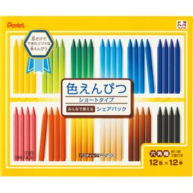 ●セット内容/きいろ、きみどり、みどり、みずいろ、あお、むらさき、ももいろ、あか、だいだいいろ、ペールオレンジ、ちゃいろ、くろ 各12本、削り器3個