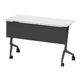 折りたたみテーブル スレント 樹脂幕板付 棚付 リフトロックキャスター W1200×D450 [T1×W9/ホワイト]