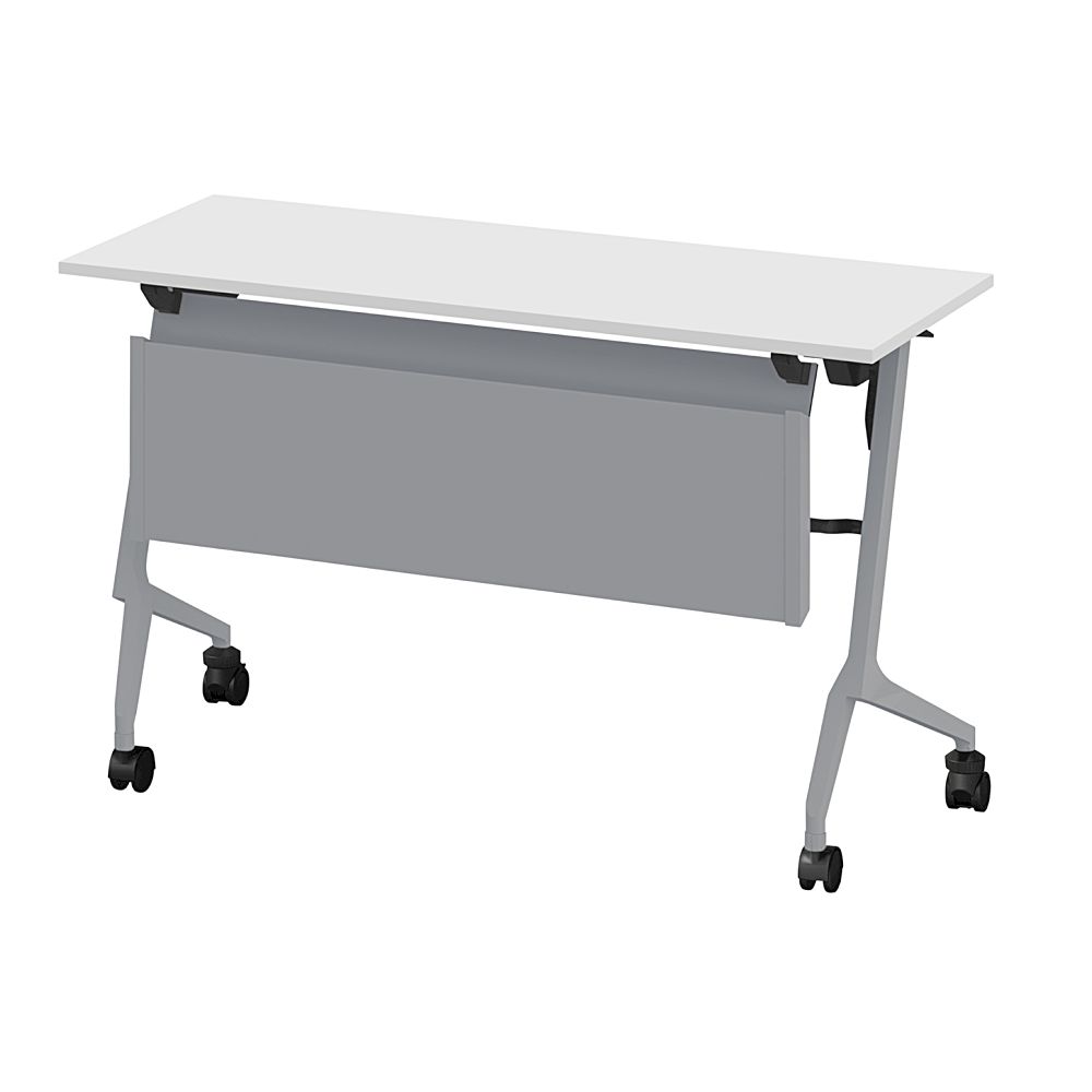 折りたたみテーブル スレント 配線ダクト スチール幕板付 リフトロックキャスター W1200×D450 [Z5×W9/ホワイト]