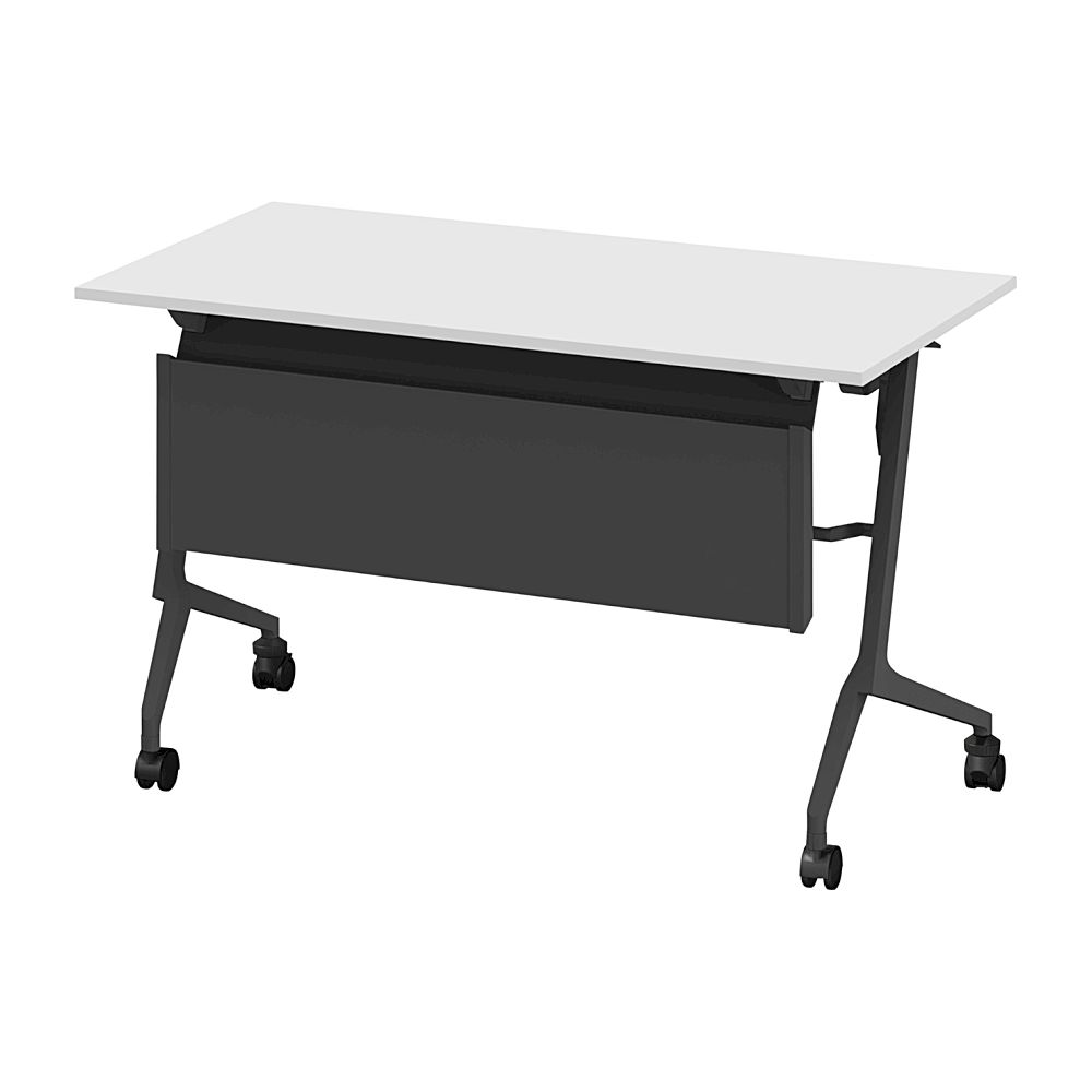 折りたたみテーブル スレント 配線ダクト スチール幕板付 棚付 リフトロックキャスター W1200×D600 [T1×W9/ホワイト]