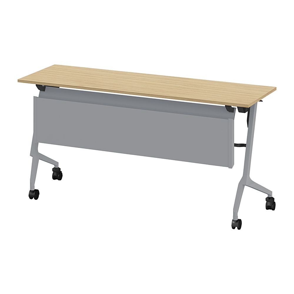 折りたたみテーブル スレント 配線ダクト スチール幕板付 棚付 リフトロックキャスター W1500×D450 [Z5×92/ホワイトオーク]