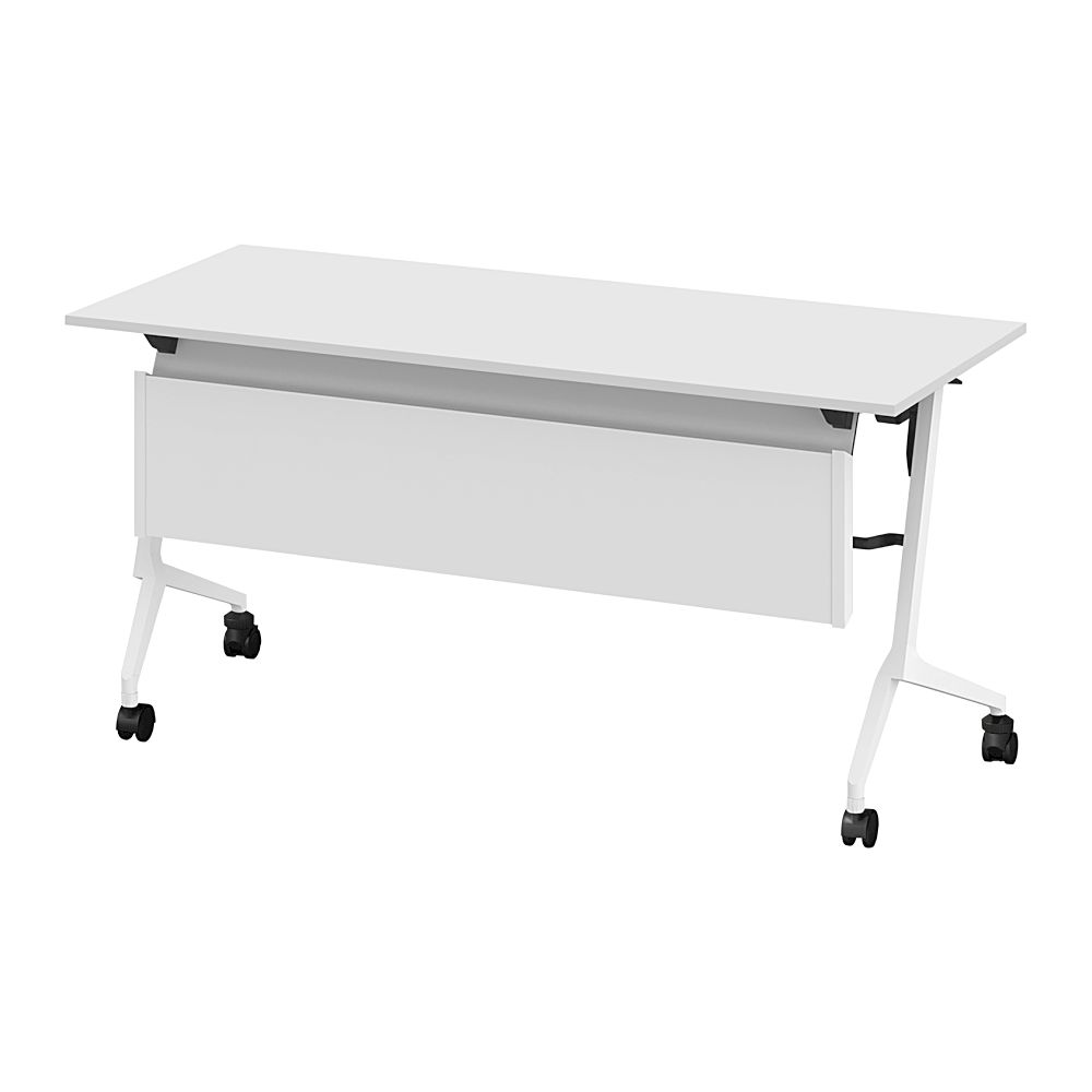 折りたたみテーブル スレント 配線ダクト スチール幕板付 棚付 リフトロックキャスター W1500×D600 [W9×W9/ホワイト]